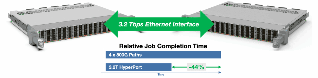 - Introductie van HyperPort voor één 3,2 Tbps high-speed interface voor schaalbare verbindingen tussen datacenterlocaties. Deze ultracapaciteit kan de voltooiingstijd van taken voor AI-bandbreedtestromen met 44% verkorten in vergelijking met traditionele load balancing over vier afzonderlijke 800 Gbps-poorten.